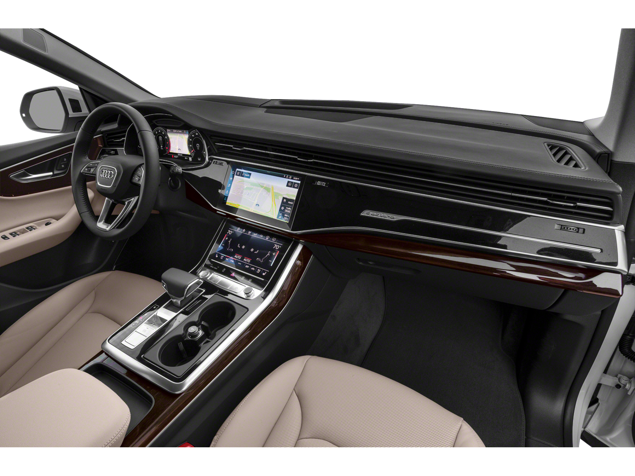 PREMIUM PLUS: Bang & Olufsen 3D Premium Sound System, 4-Zone Climate Control, Ventilated Front Seats, front passenger 4-way power lumbar, Illuminated Door Sills, Audi Side Assist w/Pre Sense Rear, Audi Phone Box w/Wireless Charging, signal booster, Heated Power Folding Auto-Dimming Exterior Mirrors, memory, High-Beam Assist, Ambient Interior Lighting Plus Package, multicolor ambient light, Top View Camera System, virtual 360 view, ADAPTIVE CHASSIS PACKAGE: 4-Wheel-Steering, Adaptive Air Suspension, YEAR 1 PACKAGE: Wheels: 22 Audi Sport 5-V-Spoke Star Design, Anthracite, Tires: 285/40R22 All Season, S line Fender Badges, Black Single Frame Mask, Front & Rear S line Bumpers, S line Illuminated Door Sills, Black Optic Exterior Kit, Roof Rails & Mask, TOWING PACKAGE: 7,700 lbs towing capacity, DAYTONA GRAY PEARL EFFECT. Audi Premium Plus with Daytona Gray Pearl Effect exterior and Black interior features a V6 Cylinder Engine with 335 HP at 5700 RPM*. Non-Smoker vehicle